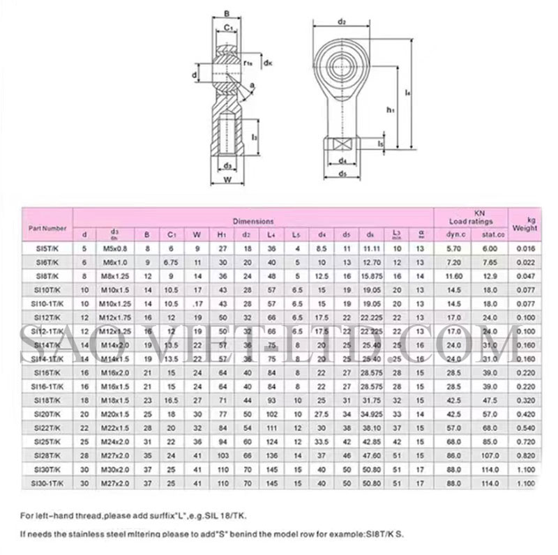 Bảng Thông Số Vòng Bi mắt Trâu IKO SI