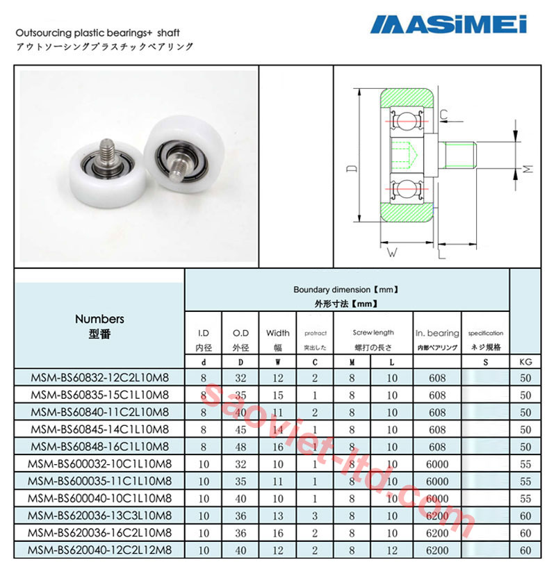 Vòng Bi Nhựa BS Cọc Vít Trục M8- M10
