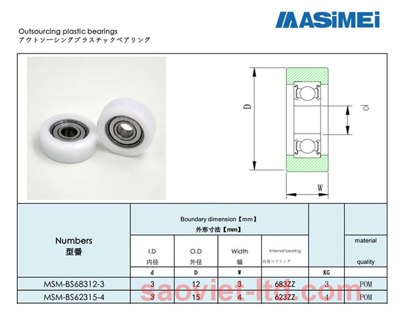 Vòng bi nhựa BS trục 3mm.