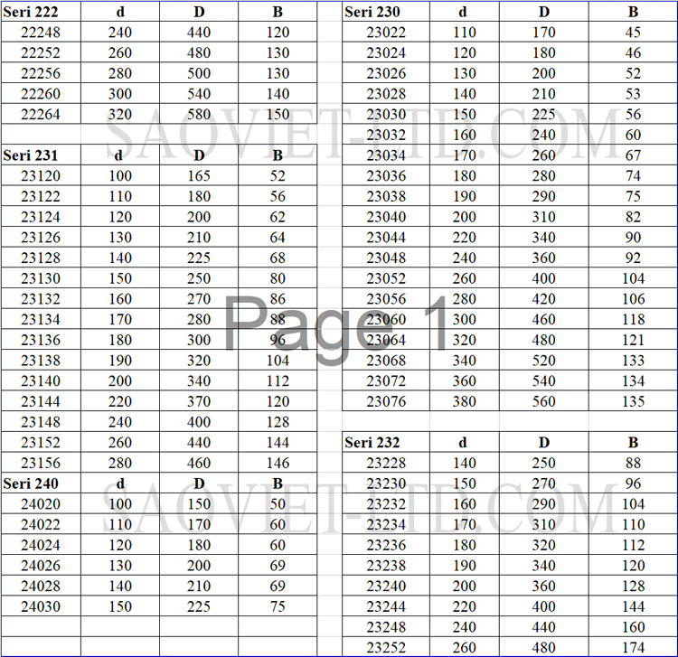 Kí hiệu Quốc tế của vòng bi bạc đạn tang trống là dãy kí tự gồm có 5 chữ số, và bắt đầu bằng chữ số 2. Ví dụ như: 22318, 22222, 23212, 29418,…còn với các chữ cái CC, CA, CCK, CAK, E, W, W33... thì như sau: