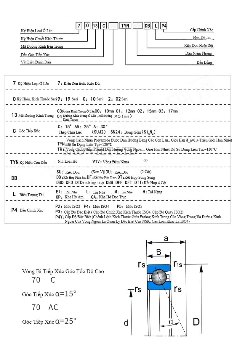 Thông số và ký hiệu của vòng bi NSK tốc độ cao 7017