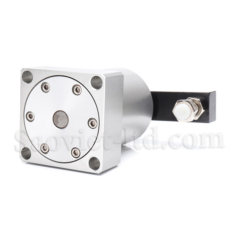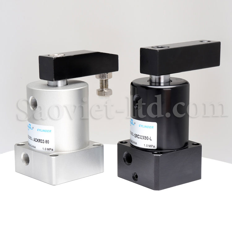 Khi xi lanh kẹp quay khí hoạt động, và piston di chuyển xuống, cánh tay (mỏ) kẹp sẽ quay một góc nhất định. Thường góc quay xy lanh kẹp là 45/60/90 độ với góc quay trái, phải. Sau đó nó giảm cho đến khi phôi được kẹp chặt.
