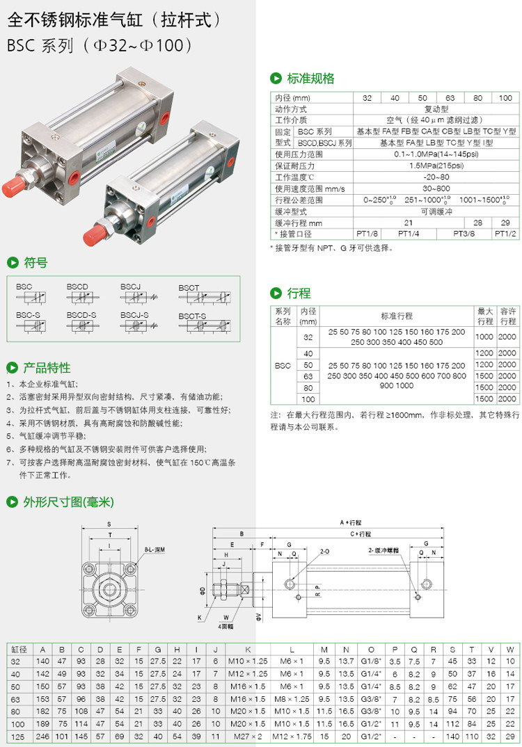 Thông Số Kỹ Thuật Xy Lanh Khí Nén inox 304