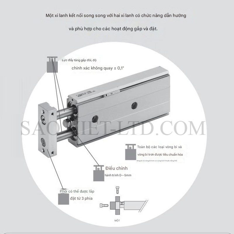 Xi lanh khí nén SMC CXSJM6, 10, 15, 20, 25 và 32 là các loại xi lanh dẫn hướng nhỏ gọn của hãng SMC, sử dụng trong các ứng dụng yêu cầu độ chính xác và ổn định cao. Những xi lanh này được thiết kế để di chuyển tuyến tính và có khả năng chịu tải tốt nhờ vào cơ cấu dẫn hướng song song.
