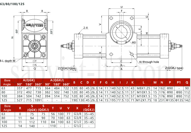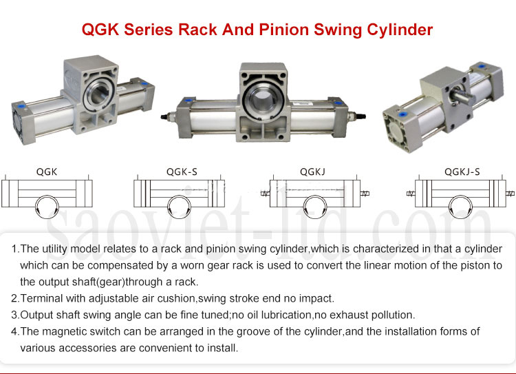 Công ty TNHH SAO VIỆT - chuyên cung cấp các loại Xi lanh Khí Quay Góc 90 Hoặc 180 Độ QGK63, QGK80, QGK100, QGK125 các loại uy tín chất lượng đa dạng các chủng loại kích thước và model, đến với sao việt khách hàng không những được ưu đãi về giá mà còn được tư vấn nhiệt tình chu đáo bởi các chuyên gia kỹ thuật hàng đầu trong lĩnh vực nghành nghề khí nén.