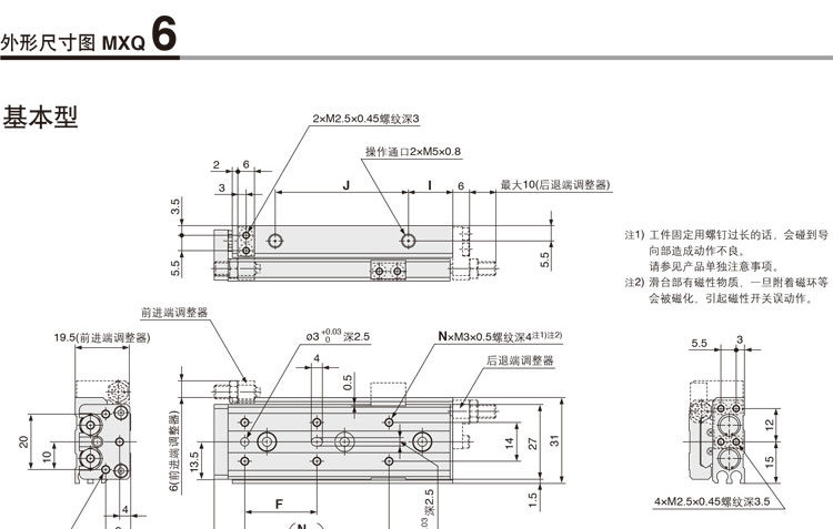 Model: Xi Lanh Khí SMC Bàn Trượt MXQ6, MXQ8, MXQ12, MXQ16, MXQ20, MXQ25