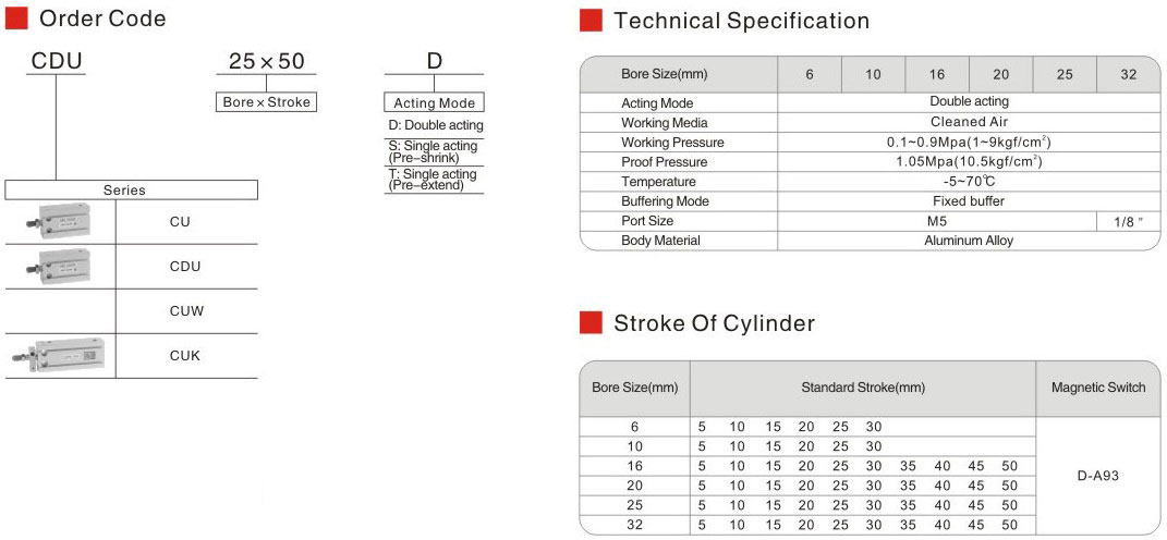 - Xylanh CDU có thiết kế nhỏ, gọn và nhẹ, có hình khối chữ nhật.