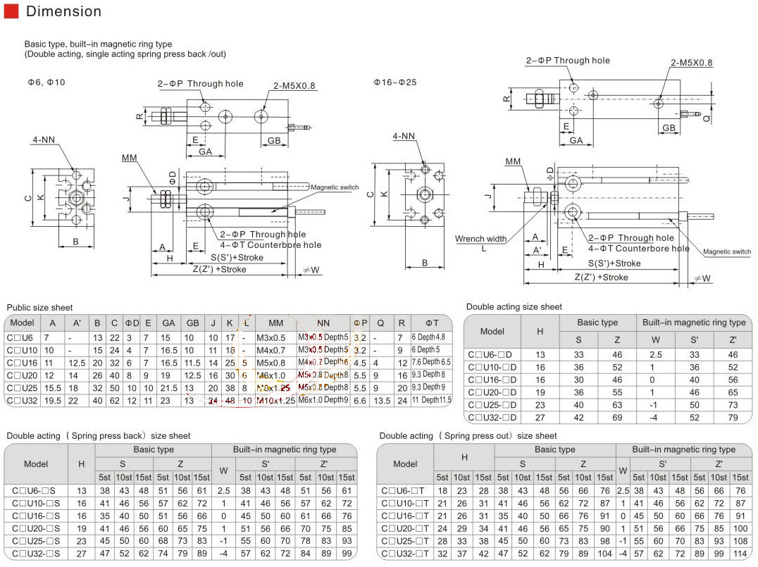 - Cồng ren cấp khí từ CDU6 đến CDU25 (từ đường kính size 6 đến size 25) là ren M5x0.8 còn dòng CDU32 là cồng ren G1/8" tương đương 10mm