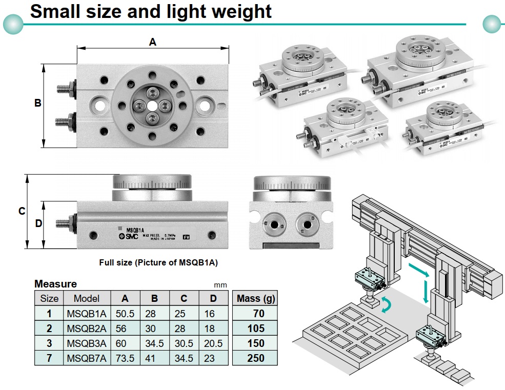 Xi Lanh MSQB có thể là coi là một chiếc xylanh đánh dấu sự thay đổi bước ngoặt trong việc sản xuất và điều khiển thiết bị khí nén. Thay vì cách hoạt động đơn thuần chỉ đẩy ra và kéo vào, giờ đây xylanh có thể xoay 180 độ với tốc độ cực cao và độ chính xác đến tuyệt vời