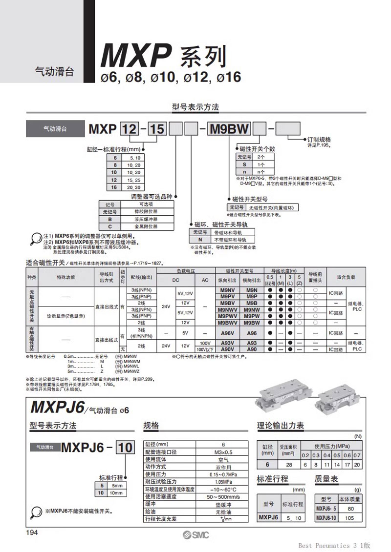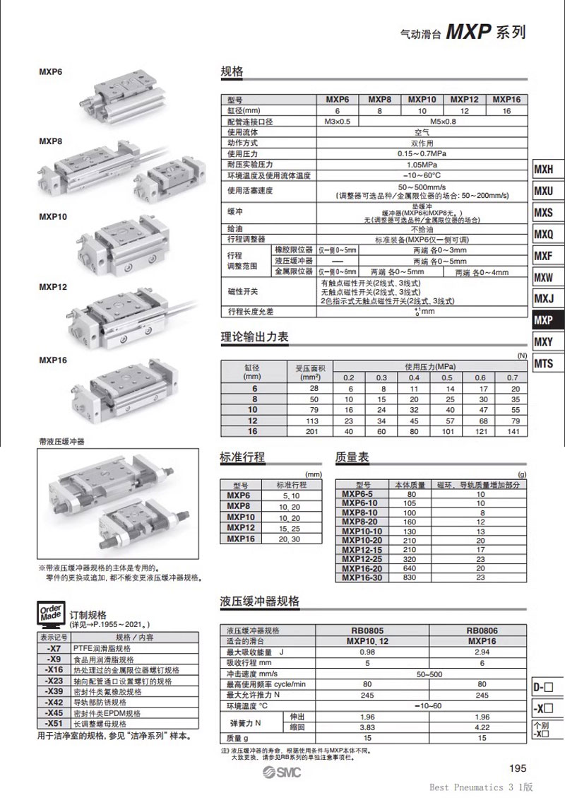 Bảng Thông Số Kỹ Thuật Xy Lanh Trượt Khí Nén Chính Xác SMC MXP
