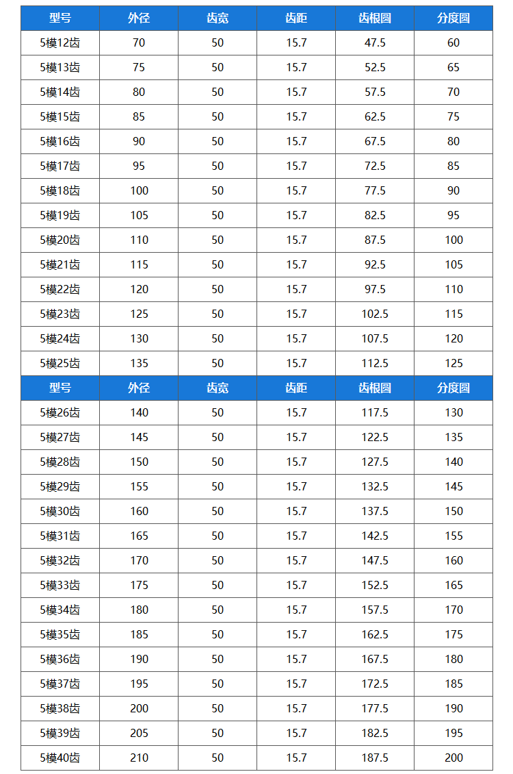 Modul: M5 – Modul 5 nghĩa là khoảng cách giữa các răng trên vòng chia là 5mm. Đây là loại modul lớn, dùng cho hệ thống truyền động tải trọng lớn hoặc tốc độ chậm nhưng yêu cầu lực mô-men cao.