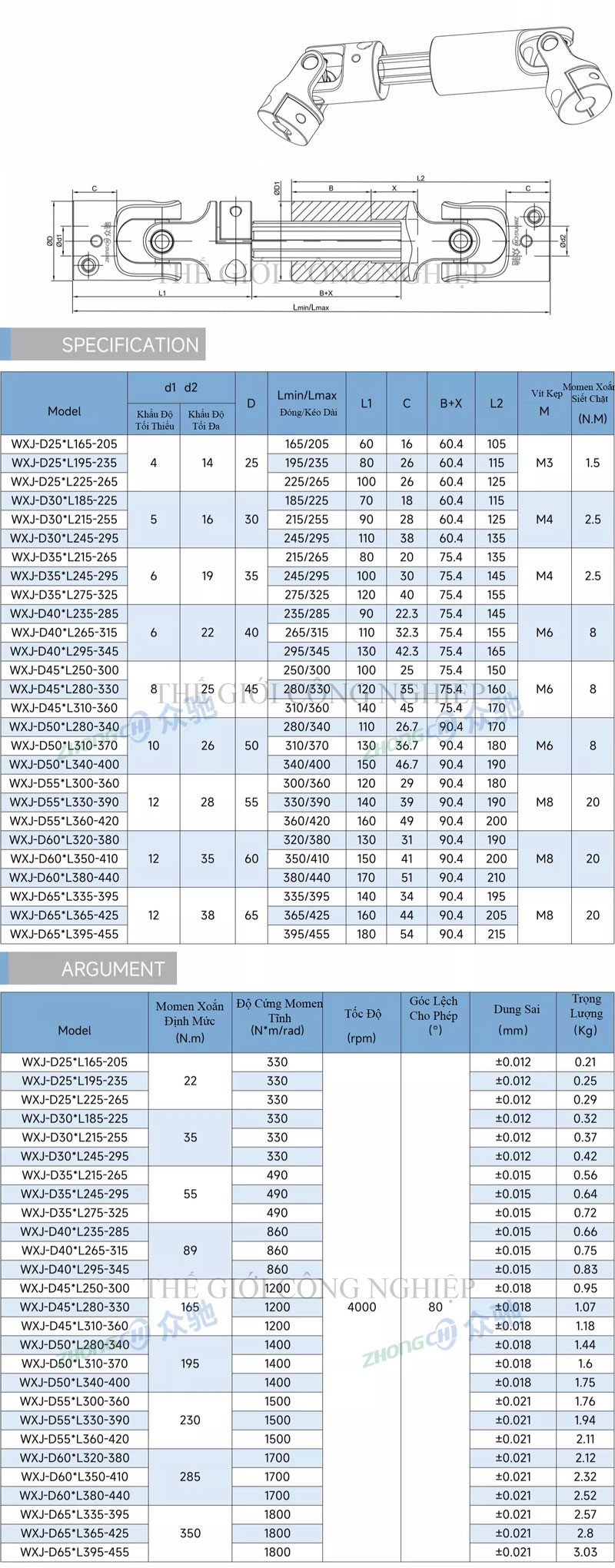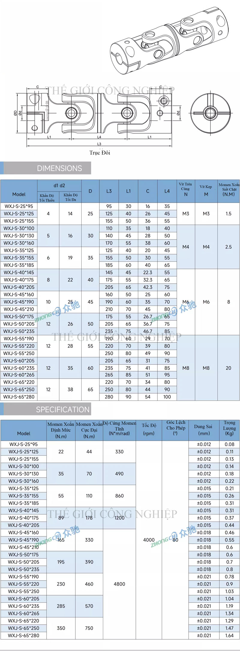 Tham khảo các mã và thông số vòng bi ở bảng kích thước