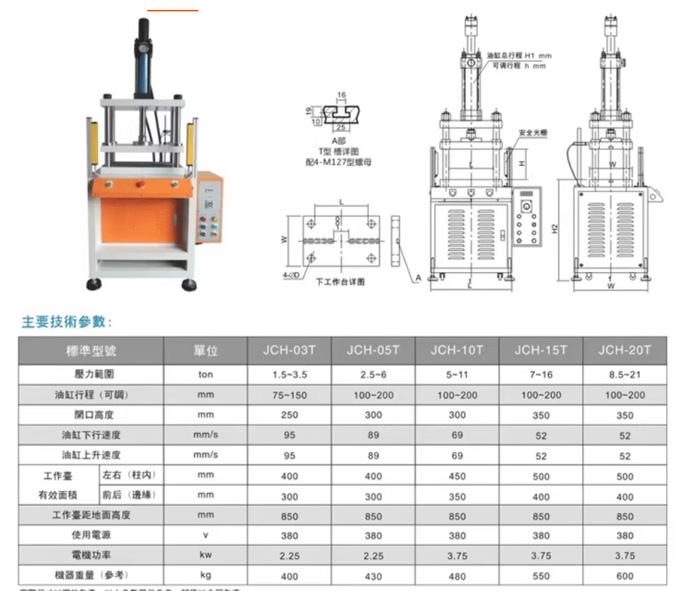 Bàn ép (bàn làm việc): Gồm bàn cố định dưới và bàn chuyển động trên; có thể trang bị khuôn mẫu hoặc gá kẹp tùy theo mục đích sử dụng.
