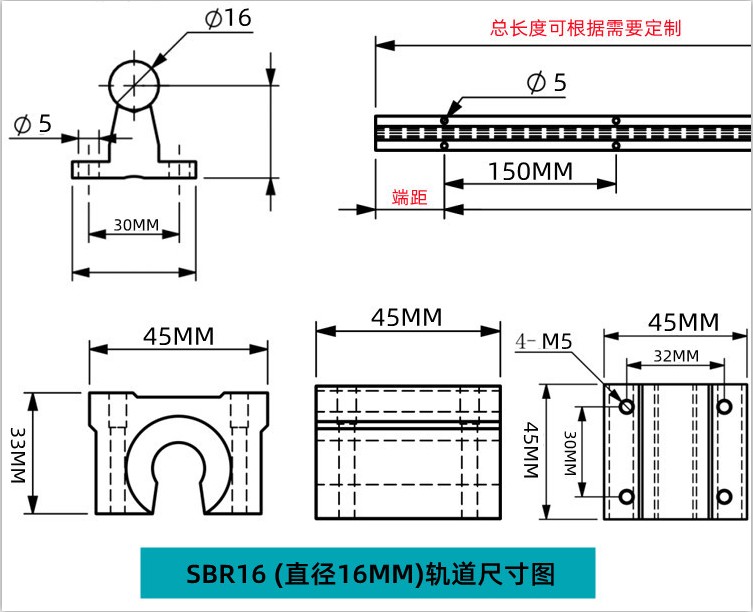 BẢNG THÔNG SỐ KÍCH THƯỚC RAY TRƯỢT TRÒN SBR