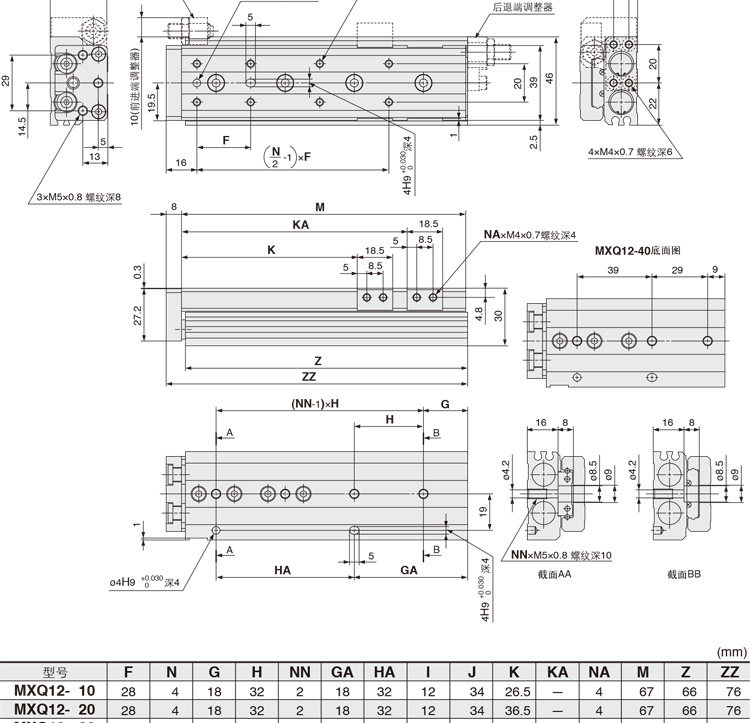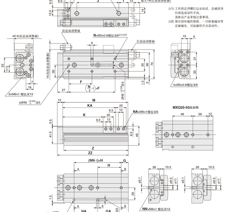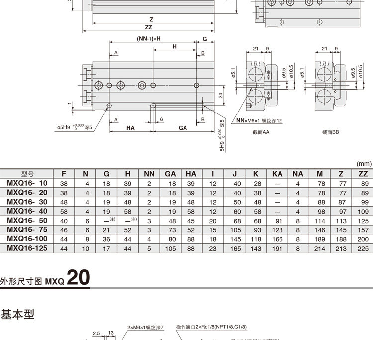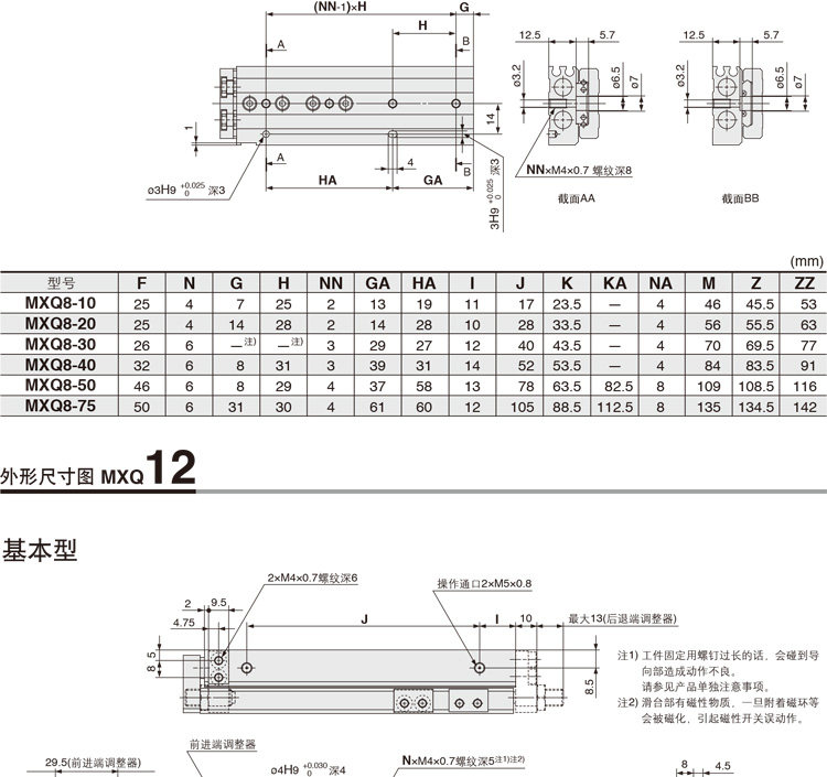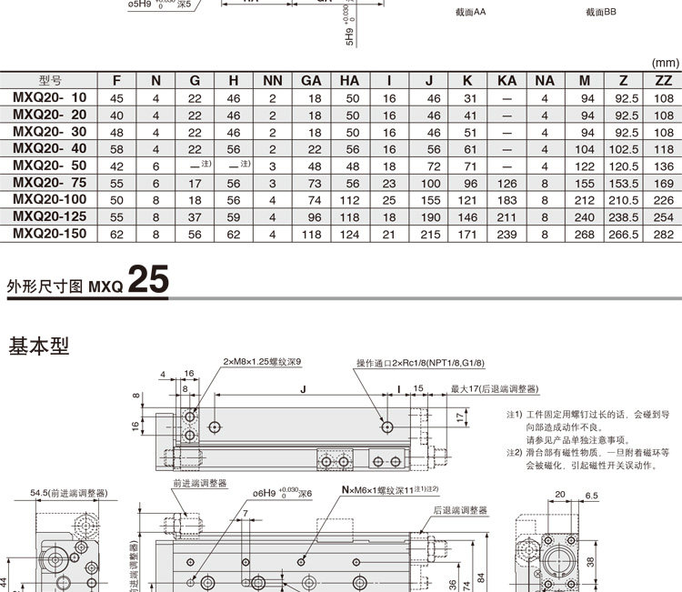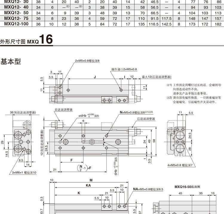 Model: Xi Lanh Khí SMC Bàn Trượt MXQ6, MXQ8, MXQ12, MXQ16, MXQ20, MXQ25